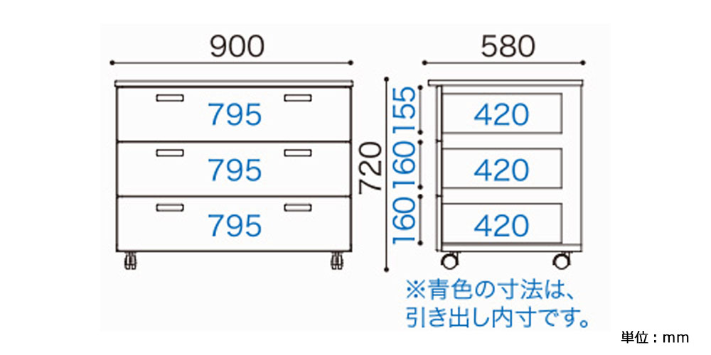 引出し内寸(単位:mm)