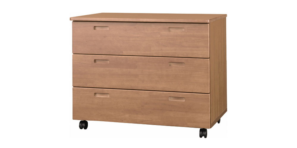 ナチュラルな木の質感とシンプルなデザインのチェストです。キャスター付きなので移動がラクに行えます。