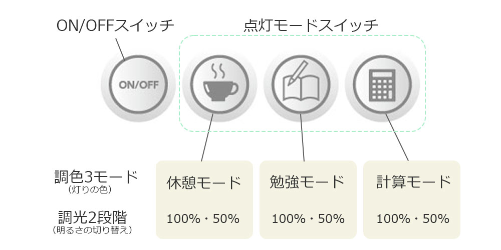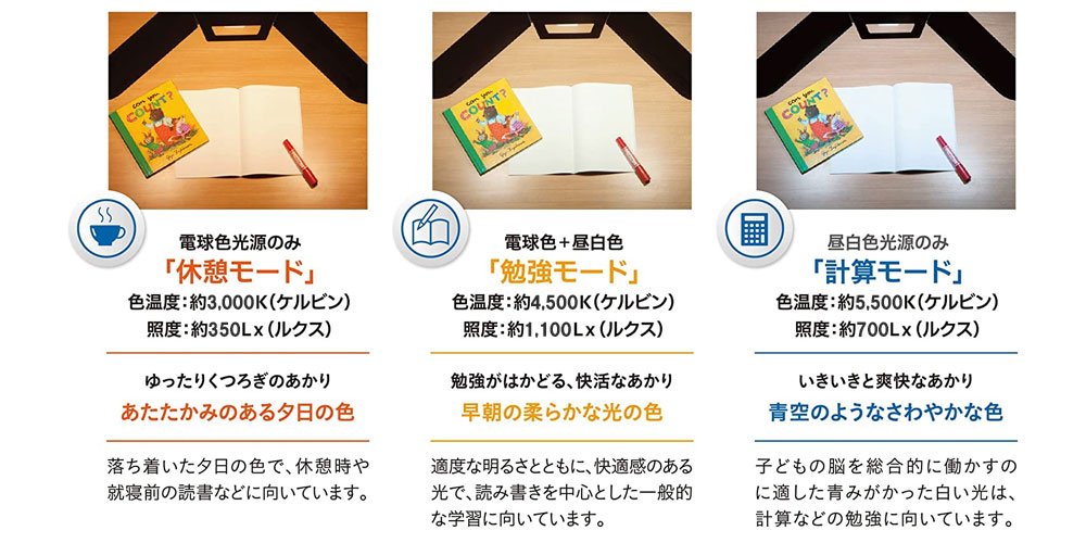 ・調色3モード(勉強モード 、休憩モード、計算モード)