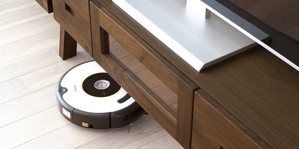 高さ20cmの無垢材を使った脚部。床下から20cmあるため掃除用ロボットやフロア用モップでのお掃除も簡単です。