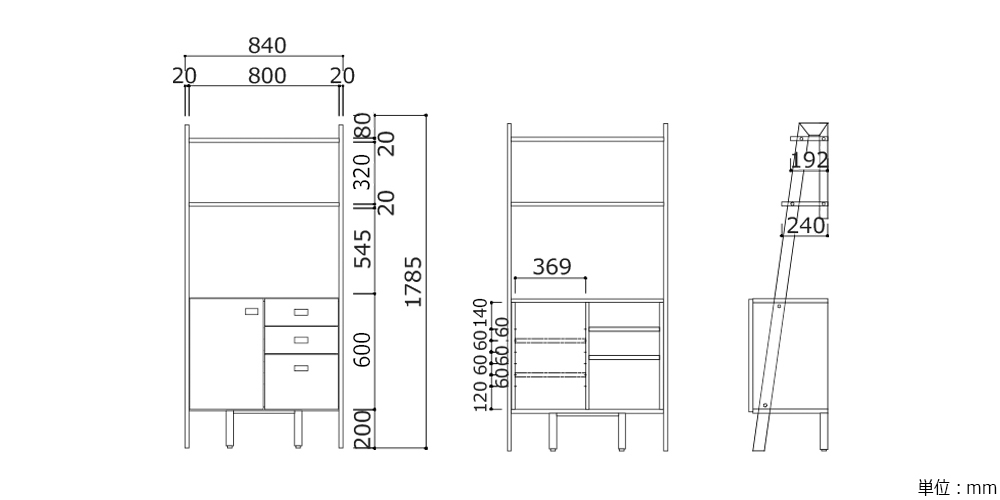 | 天板〜飾り棚下段 | 幅800x奥行390x高さ545 |