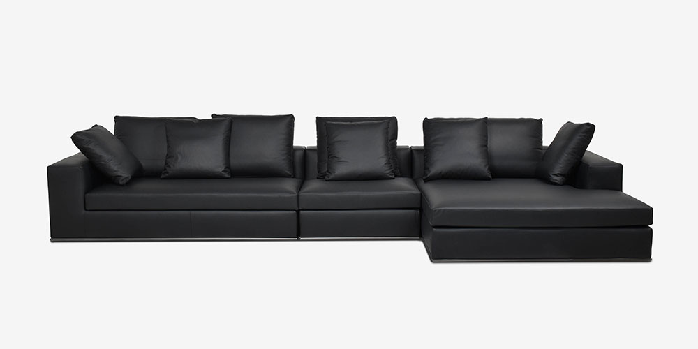 erba(エルバイタリア)カウチソファ3点「ビアモンテナポレオーネ」向かって右カウチ 革ブラック ARREDO300