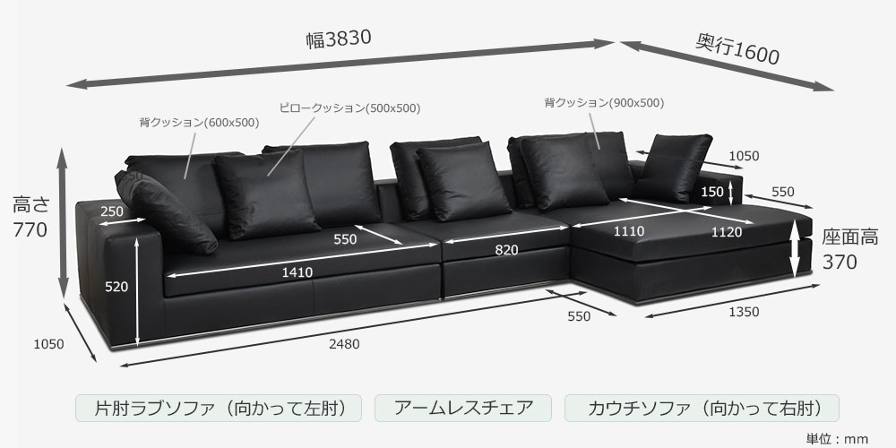 | 片肘ラブソファ(向かって左肘) | 幅1660x奥行1050 |