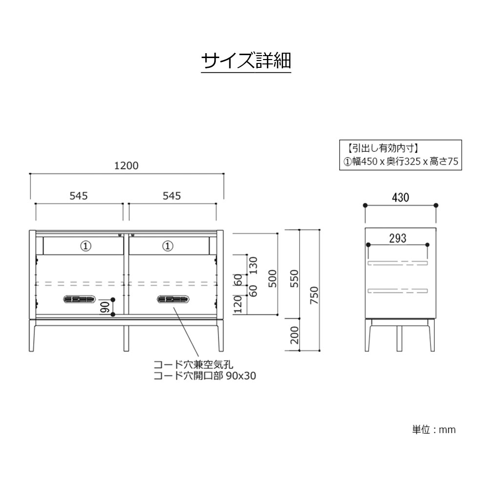 テレビボード「モル」ホワイトオーク材 全3サイズ