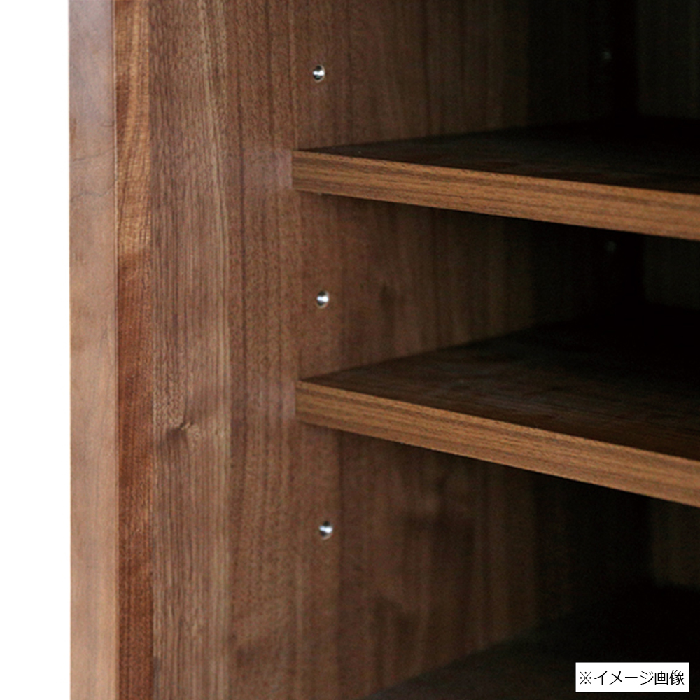 無垢材の重厚で上品な質感。キッチンやダイニングスペースはもちろん、リビングにも置けるシャープでモダンなミドルサイズのカップボードです。