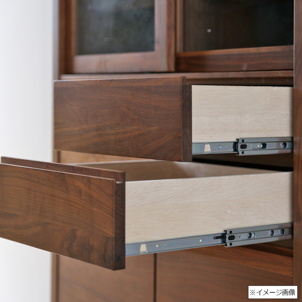 引出しにはフルオープンスライドレールを装備。スムーズに開閉できる引出しは浅めの作りで、スプーンやフォークなどのカトラリー類もまとめやすい仕様です。