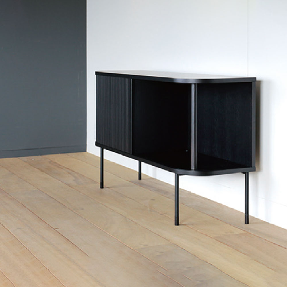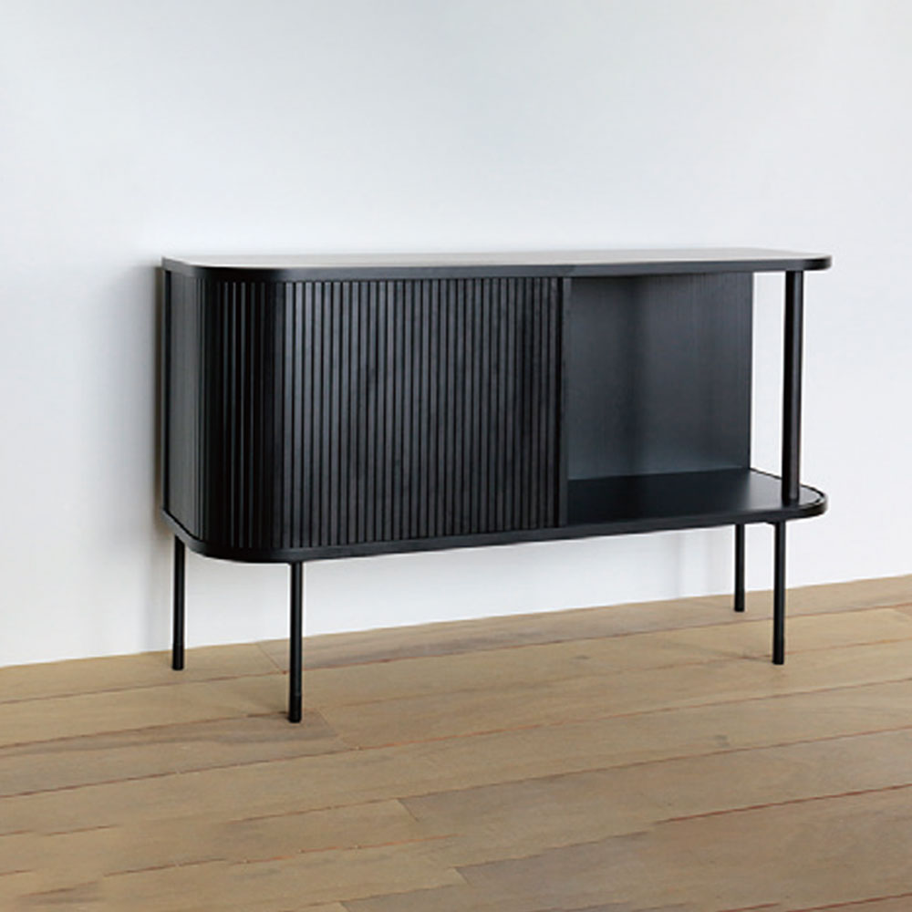 AKI+(アキプラス)オープンチェスト「JYABARA ジャバラ」ロータイプ 高さ72cm オーク材全2色 脚部:サンドブラック【受注生産品】