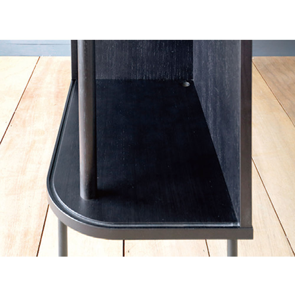 塗装を施したこちらのオープンチェストは、木質を活かす美しい染色塗装が無垢材とは違う洗練された印象を生み出しています。空間に溶け込む丸みを帯びた本体部分と、細身のスチール脚が浮遊感を与え軽やかなデザインです。※画像はブラック/脚のカラーサンドブラックです。
