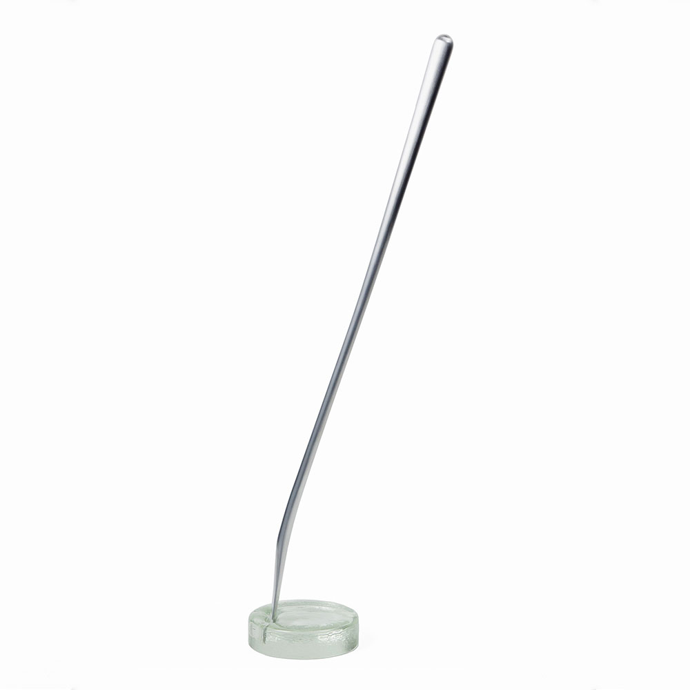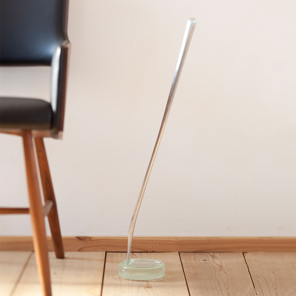 立ったまま使えるスタンド付きのアルミ製の靴べらです。靴べらが描く滑らかな曲線はかかとに優しくフィットします。水の塊に靴べらが刺さっているような佇まいを醸し出すガラス製のスタンドは、空間に軽やかさを与えます。※画像はイメージです。