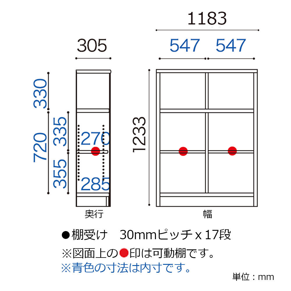 小島工芸 書棚 「Nアコード 120M」幅118.3cm ミドルタイプ 全4色