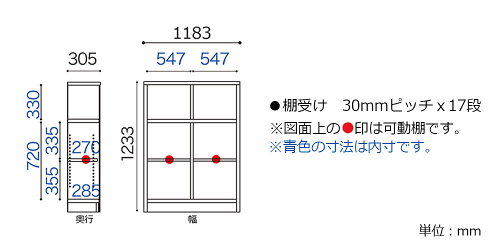 可動棚は後方に向かって約1度の勾配をつけています。収納物が手前に落下しにくいようになっています。