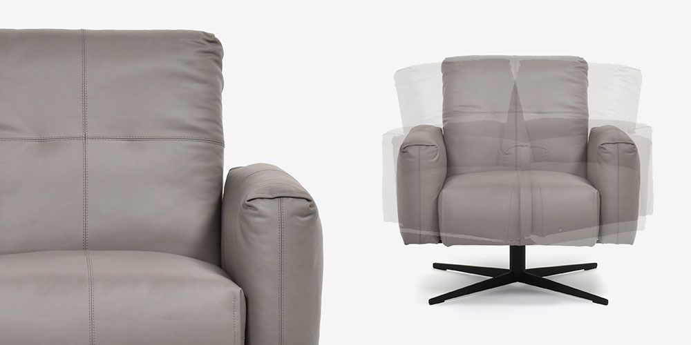 アームや背もたれの張り地を織り込み、刺し子縫いやダブルステッチなど、手のかかる繊細な仕上げが数多く施されています。ディテール・極上な上品さにこだわったデザインも魅力です。回転式で、自由に方向を変えること可能です。