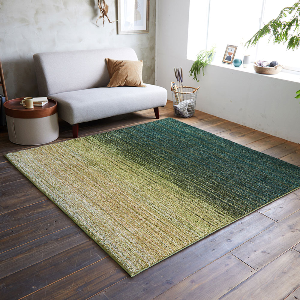 深みのあるグラデーションカラーが特長のラグ「オンブレー」グリーン