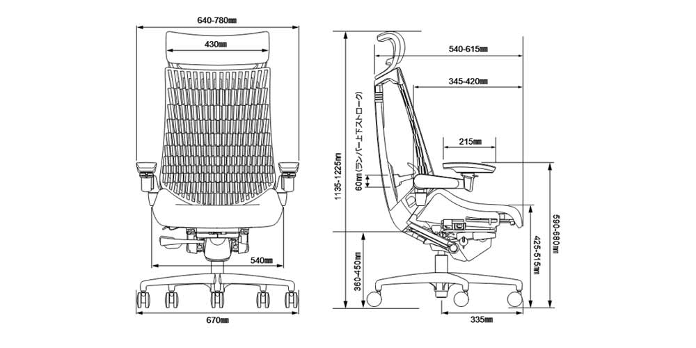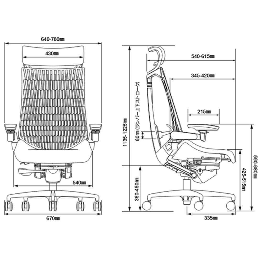 幅640〜780X奥行540〜615X高さ1135〜1225