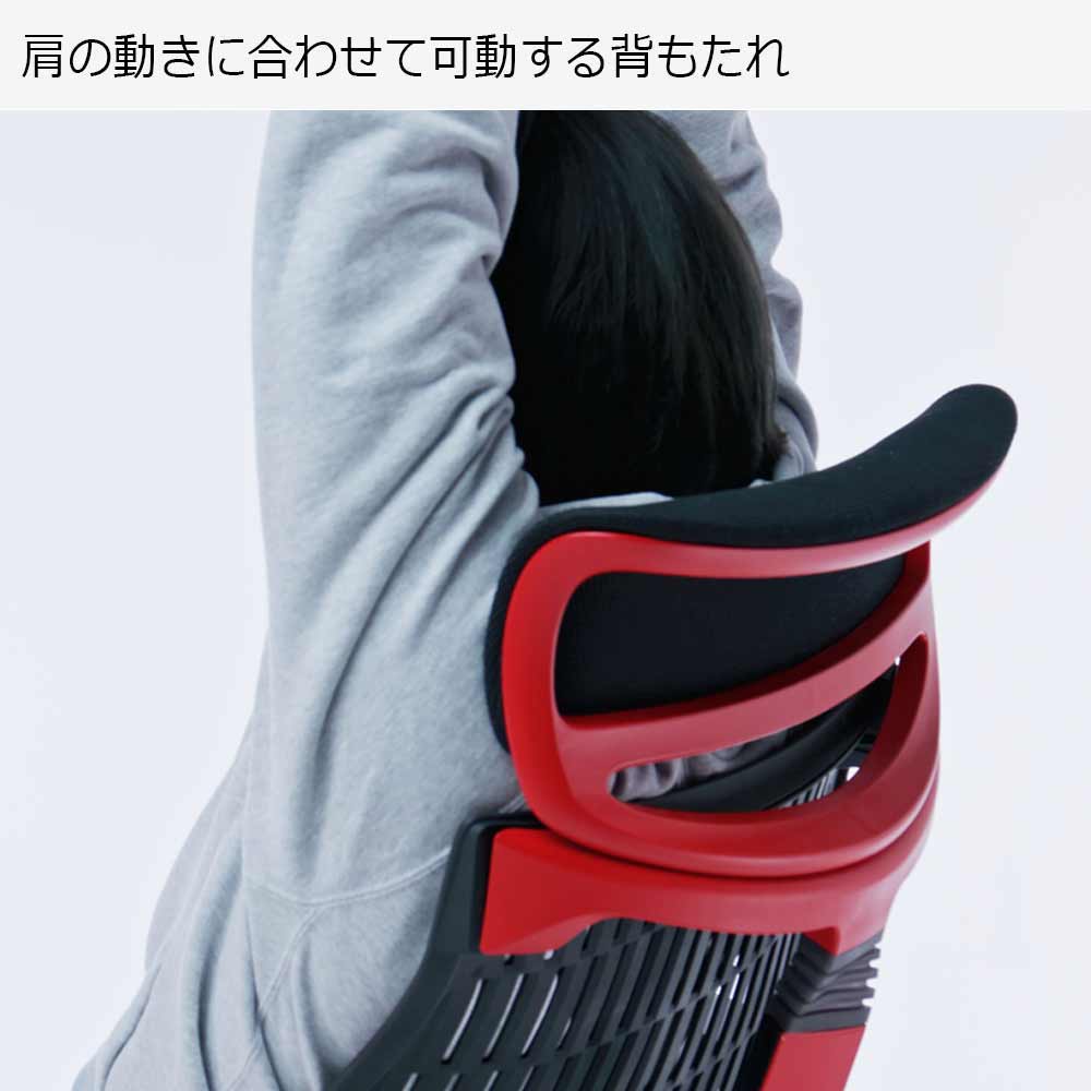 肩の動きに合わせて動くバックレスト(背もたれ)