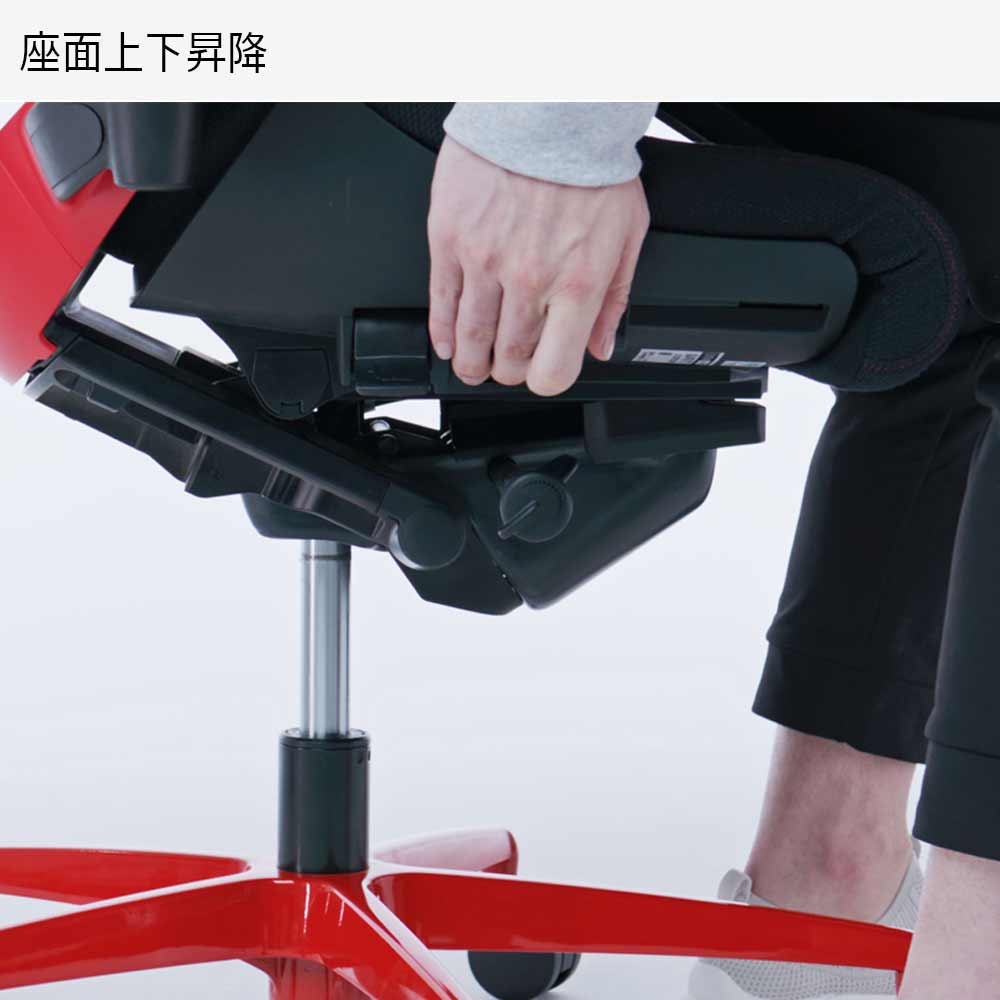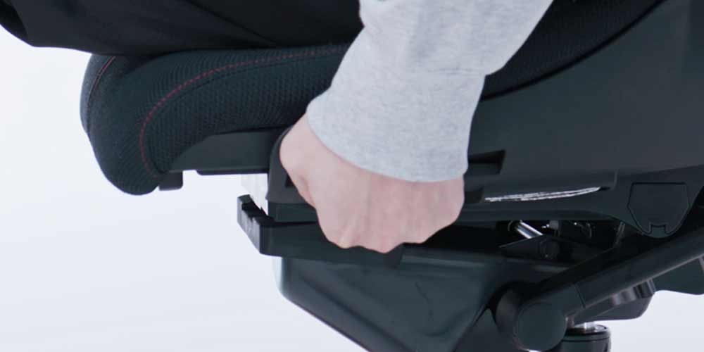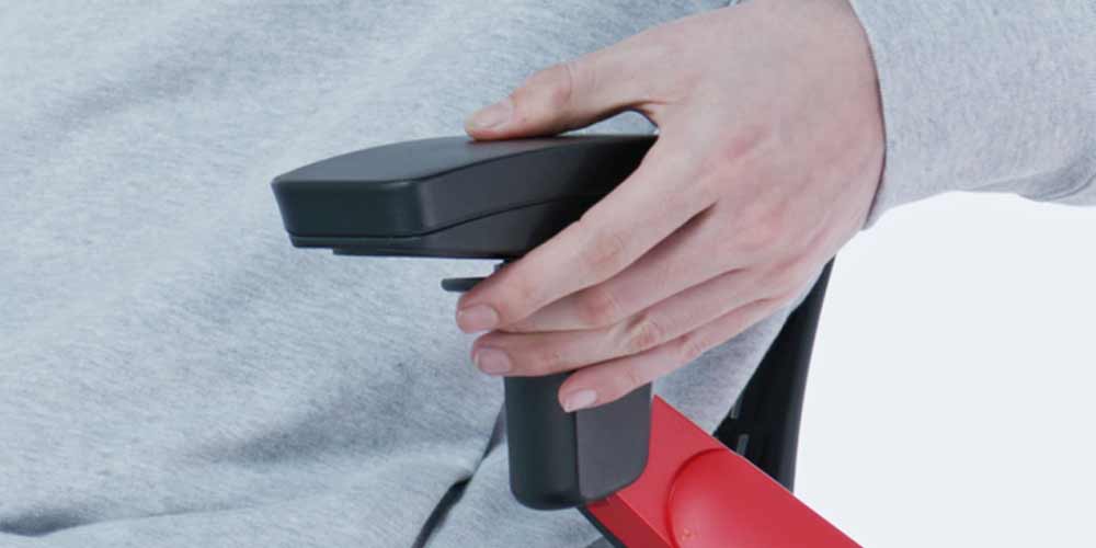 肘当ては、調節用のレバーを持ちながら自在に動かすだけのワンアクションで、位置が瞬時に定まります。上下、前後、左右回転と自在に調節が可能ですので常に最適な肘位置をキープでき、さまざまなゲームシーンにおける身体にかかる負担・疲労を緩和することができます。