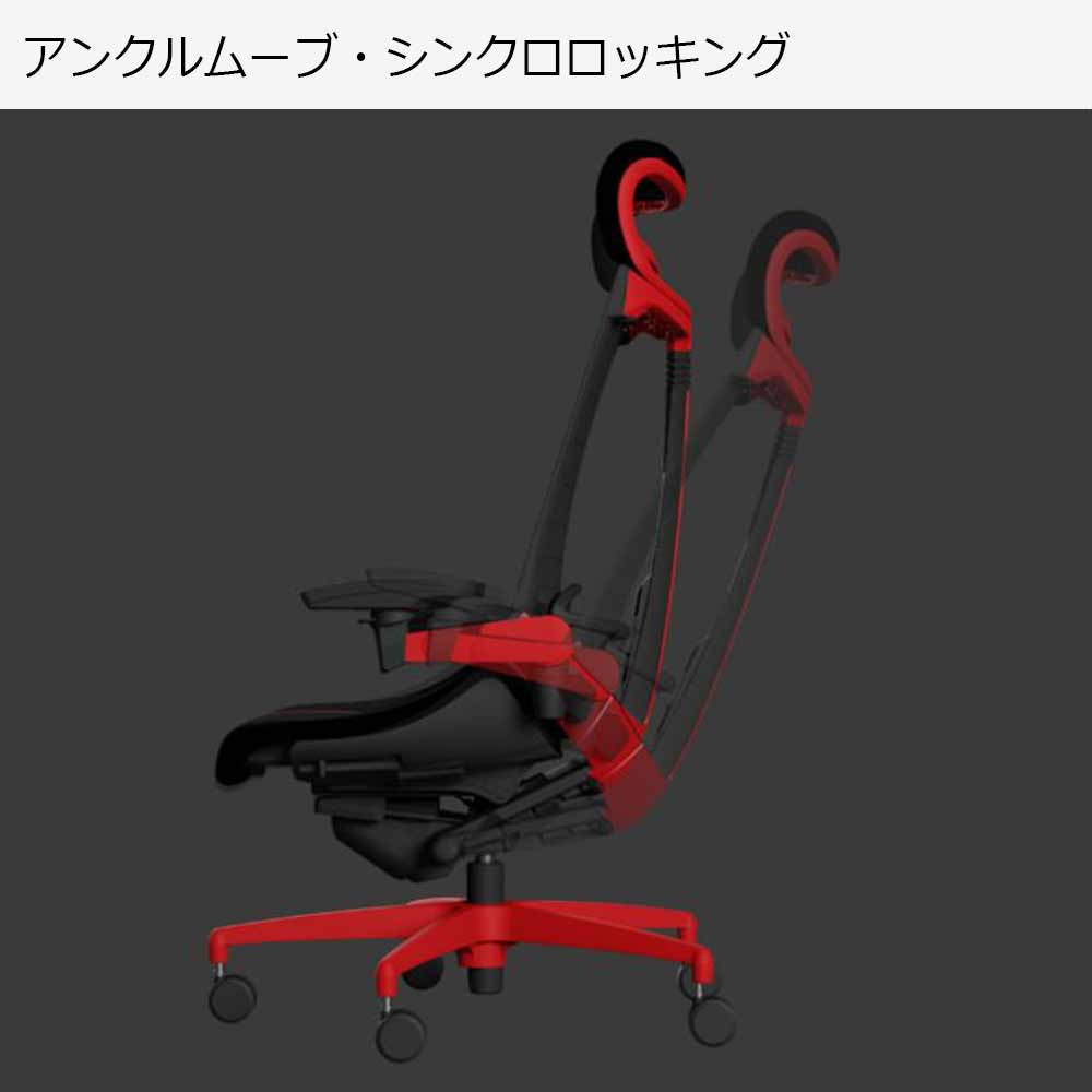 肘当ては、調節用のレバーを持ちながら自在に動かすだけのワンアクションで、位置が瞬時に定まります。上下、前後、左右回転と自在に調節が可能ですので常に最適な肘位置をキープでき、さまざまなゲームシーンにおける身体にかかる負担・疲労を緩和することができます。