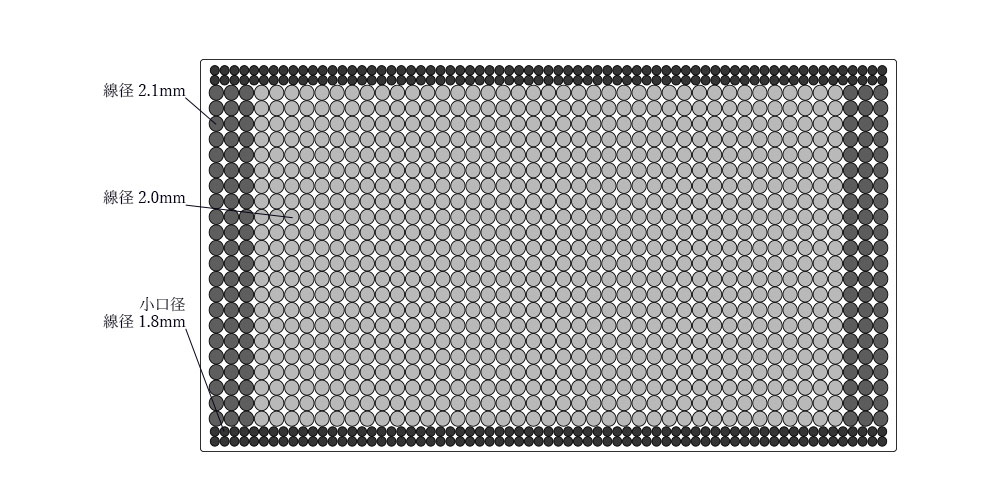 型崩れしやすいマットレス外周には太線経や小口径のポケットコイルを配置。マットレスの耐久性を高めるとともに縁の落ち込みを抑え、マットレス全面を快適に使えるよう設計しています。※画像はイメージイラストです。