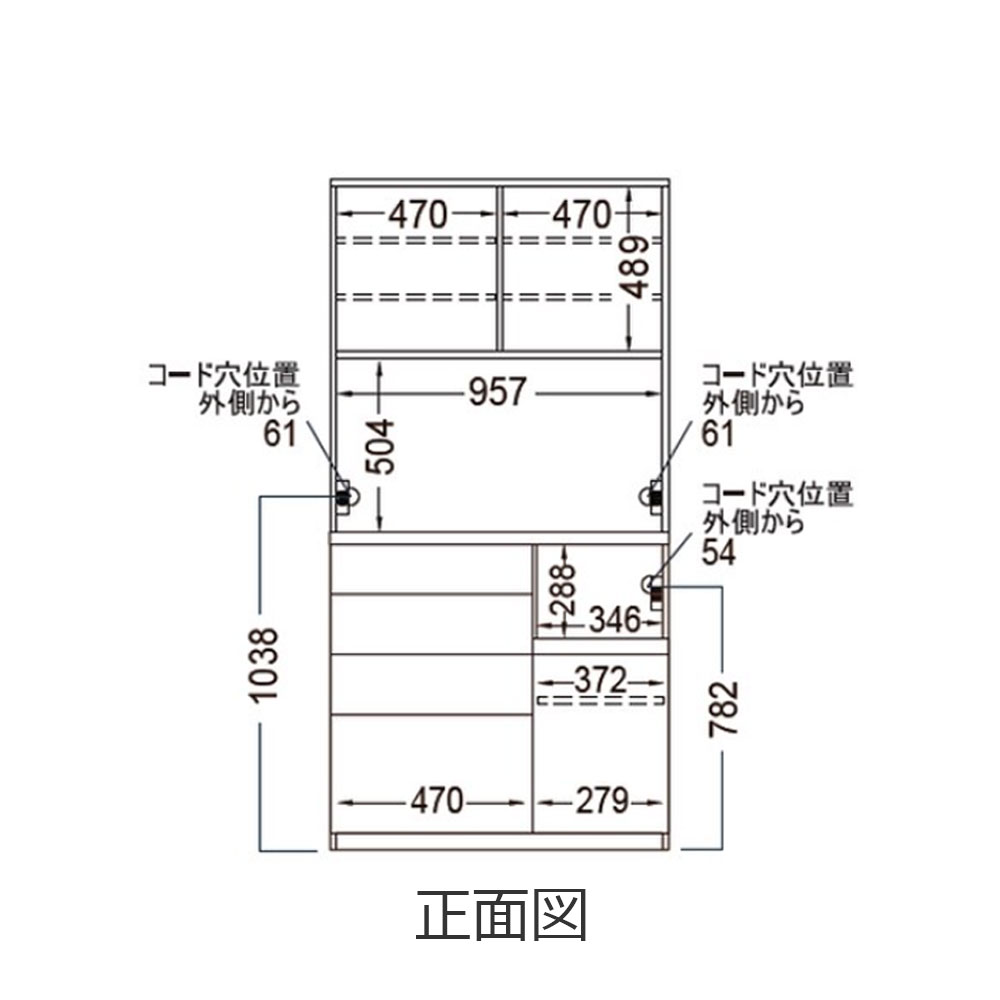 | 家電収納部分 | 幅346x奥行440x高さ288 |
