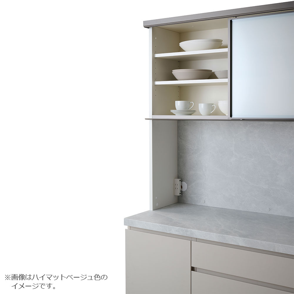 ライトストーン色のバックボードとカウンター天板に超マット素材のハイマットベージュ色を組み合わせており、優しく温かみのある印象です。画像の組み合わせ:CPA-600RM、CPA-1800RM、CP-VH60UM(上置き)、CP-VH180UM(上置き)※画像はCPシリーズのイメージです。