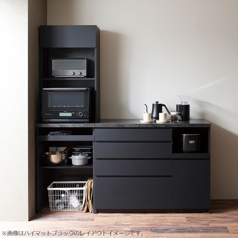 マットでなめらかなハイマット素材にブラックストーン色の石目柄がアクセントになり、モダンでスタイリッシュな印象のハイマットブラック色。組み合わせのアイテム:CPA-602RM、CPA-1200RM、CP-VH60UM(上置き)、CP-VH120UM(上置き)※画像はカラーをお伝えする為のCPシリーズのイメージです。