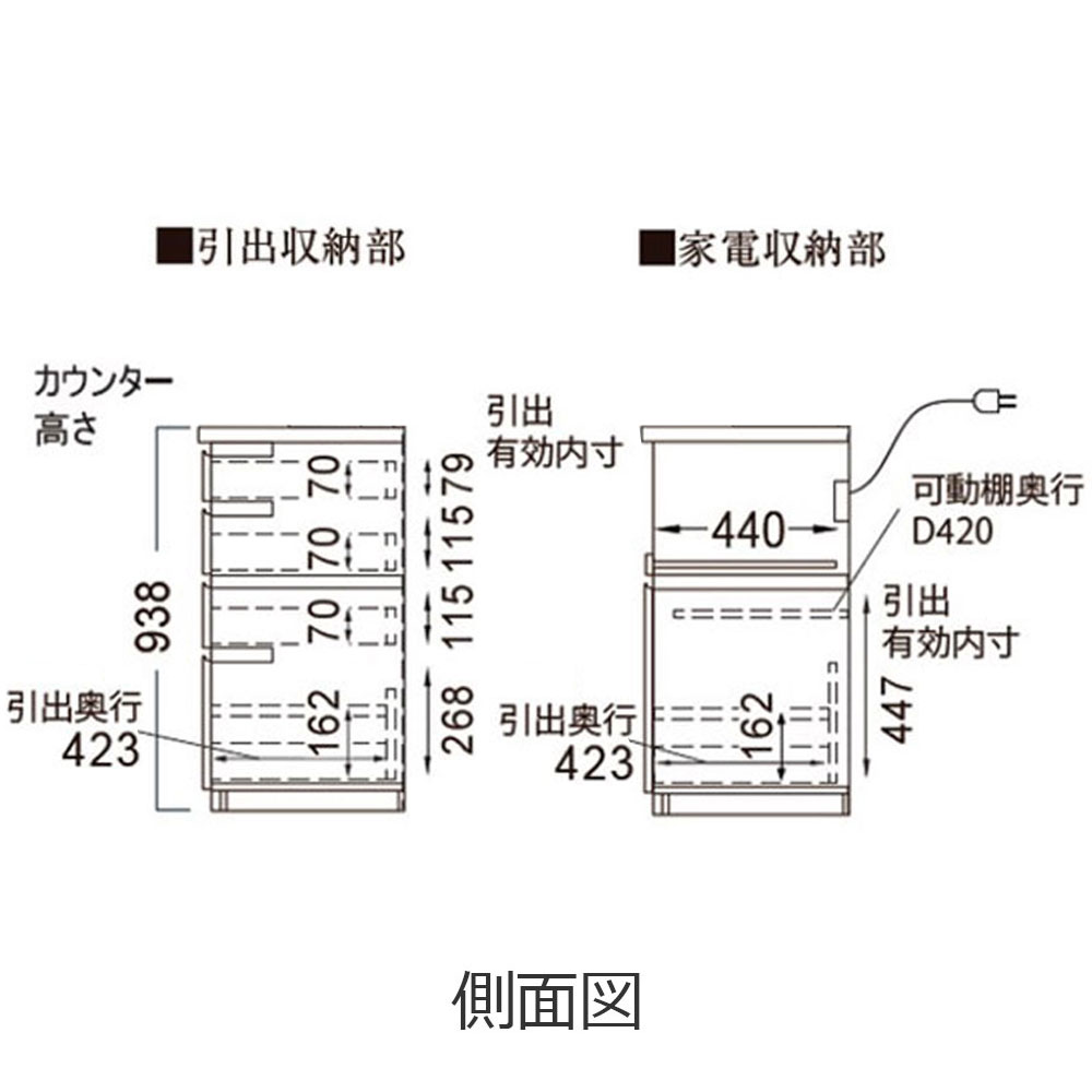 ※点線部:可動棚板、引出し