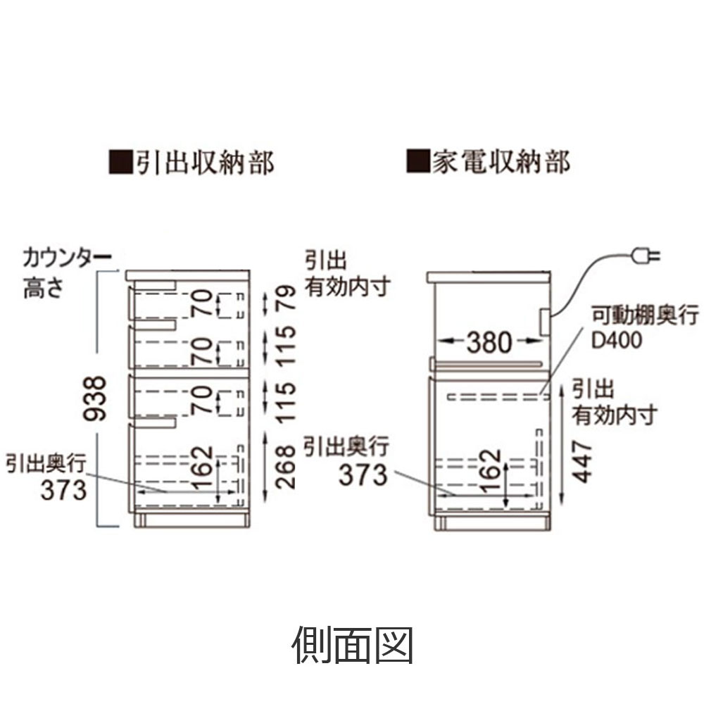 ※点線部:可動棚板、引出し