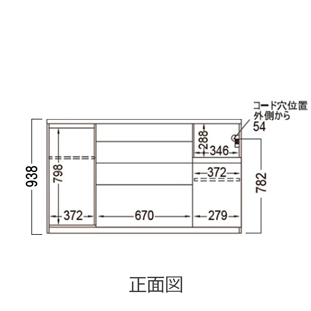下台家電収納部分:2口コンセント(1500Wまで)X1