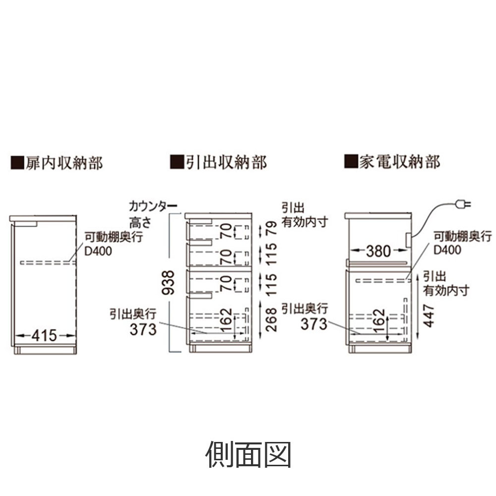 スライドテーブル式の家電収納スペース付きです。※蒸気が発生する家電はすべて引き出した状態でご使用ください。