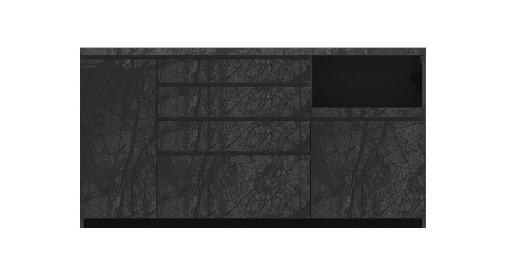 高級感のあるデザインと高い機能性を兼ね備えた食器棚シリーズ「CP」のカウンタータイプ。スムーズに引き出せる、ヘティヒ社のアーキテック引出しを採用したハイグレード仕様です。ダイナミックな石目柄とハイマット仕様の単色、それぞれに個性のある色柄全4色からお選びいただけます。※画像はハイマットブラックのコーディネートイメージです。