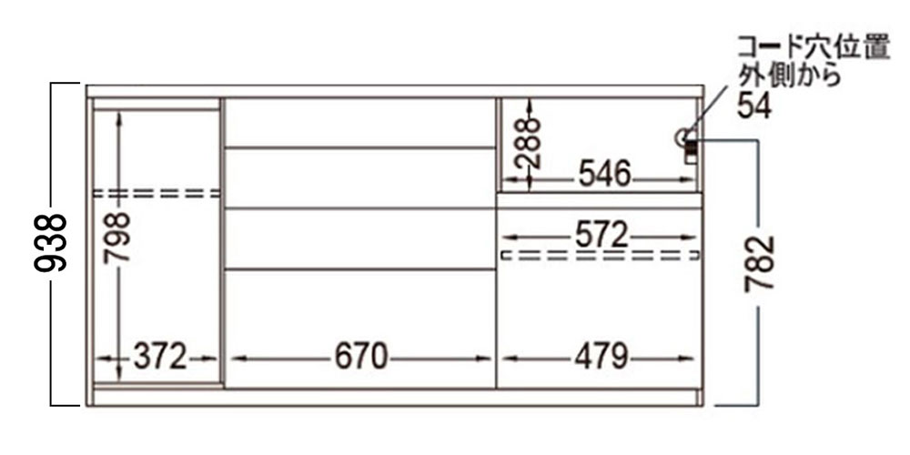 下台家電収納部分:2口コンセント(1500Wまで)X1