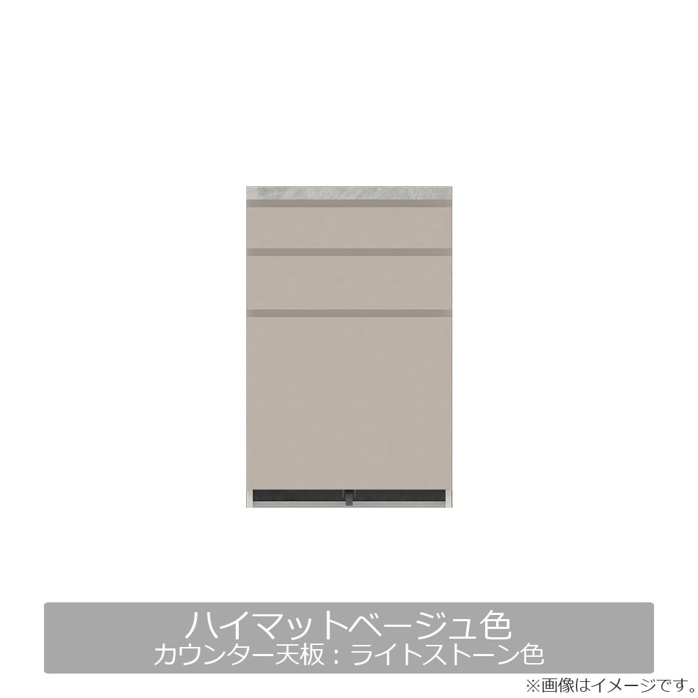 ライトストーン色のカウンター天板に超マット素材のハイマットベージュ色を組み合わせており、優しく温かみのある印象です。画像の組み合わせ:CPA-600RM、CPA-1800RM、CP-VH60UM(上置き)、CP-VH180UM(上置き)※画像はカラーをお伝えする為のCPシリーズのイメージです。