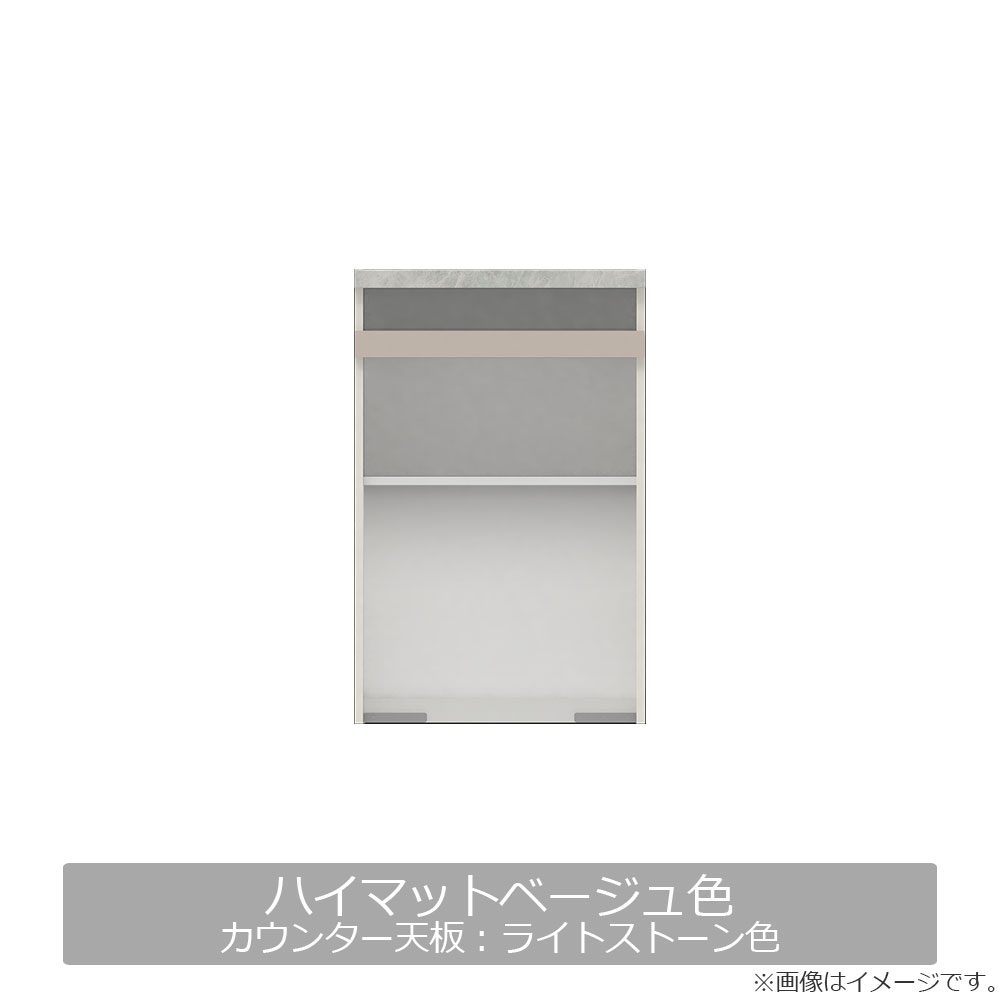 ライトストーン色のカウンター天板に超マット素材のハイマットベージュ色を組み合わせており、優しく温かみのある印象です。画像の組み合わせ:CPA-600RM、CPA-1800RM、CP-VH60UM(上置き)、CP-VH180UM(上置き)※画像はカラーをお伝えする為のCPシリーズのイメージです。