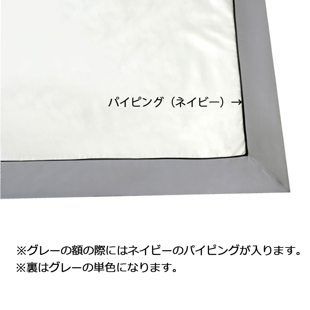 グレーの額の縁にはネイビーのパイピングが入ります。裏はグレーの単色になります。