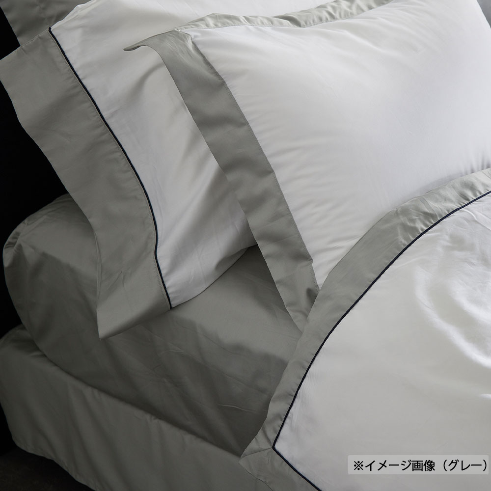 「ロイヤルテーラード」のカバーリングシリーズは、白を基調としたシンプルな配色に、トラディショナルな額デザインが清潔感と高級感を醸し出し、ホテルのような非日常の洗練された空間を演出します。※ボックスシーツは無地です。画像はグレーのコーディネートイメージです。
