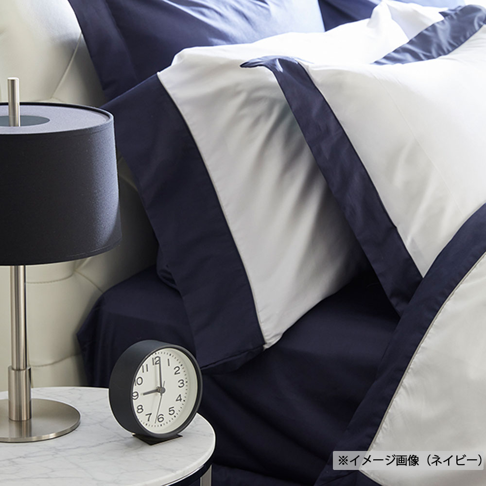 細番手(60番手)の上質なコーマ糸を使用し、高密度(打ち込み本数300本)に織り上げたサテン織の生地は、滑らかな肌触りと光沢感があります。カラーはシリーズ内でコーディネートを楽しめる3色展開です。※画像はネイビーのコーディネートイメージです。