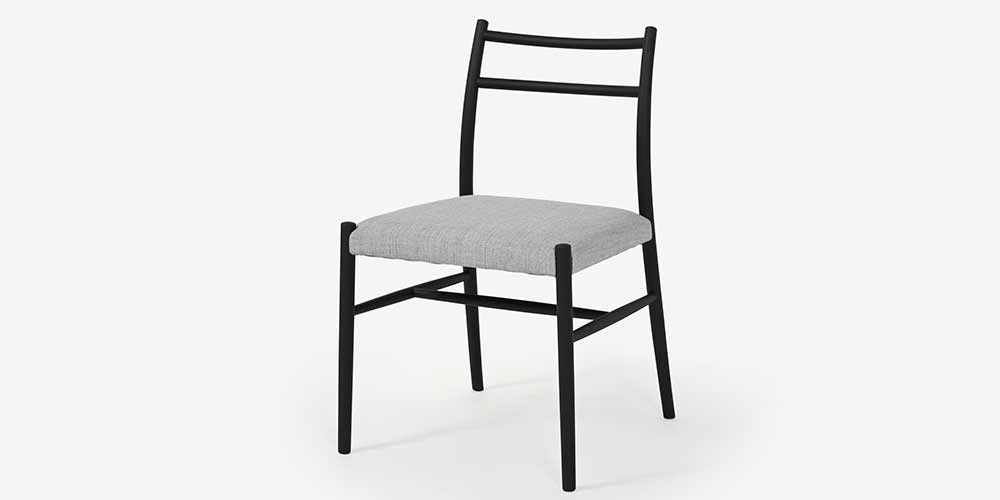 艶の少ないマットなブラック色の木部とグレーの張地の組合せが、より一層の北欧テイストを感じさせます。