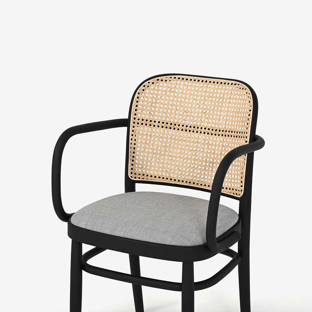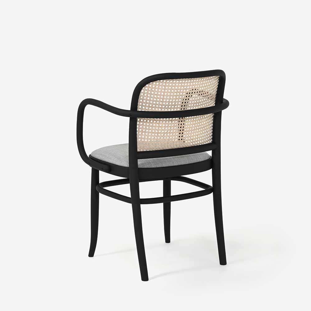 チェア「712-RU」シリーズは、オーストリアを代表する建築家ヨゼフ・ホフマンが1920年代に発表した通称“プラハチェア”を現代のライフスタイルに合わせてリデザインしたモデルです。曲木特有の流れるような優雅なラインと、心地よい座り心地のために計算し尽された職人の技術が光るチェアです。籐張りの背もたれは通気性に優れ、軽やかな印象。背面から見ても曲木家具ならではの美しさを楽しむことができます。