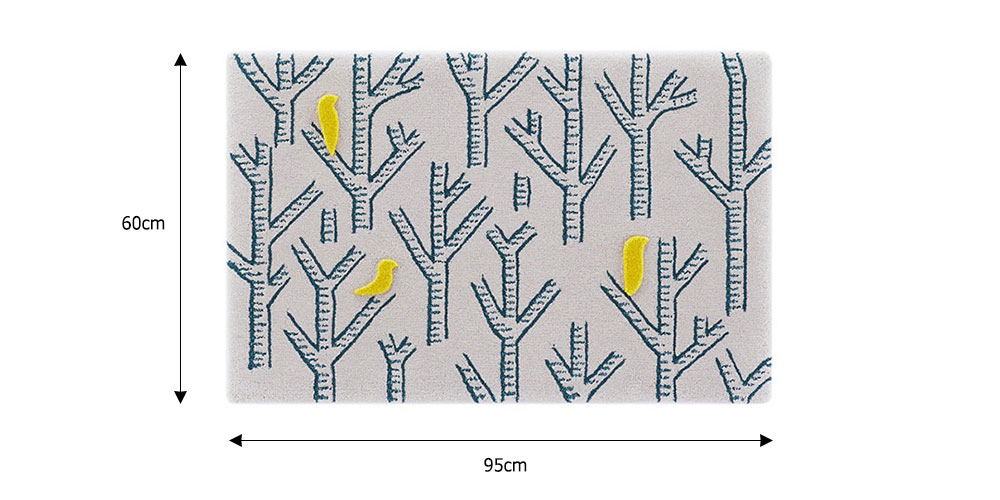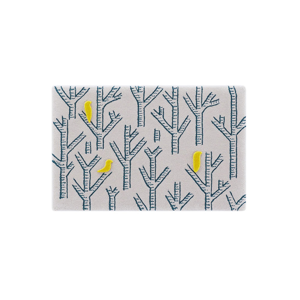 山形緞通 手刺緞通「birds in the forest」XSサイズ(幅95x長さ60cm) 防炎【受注生産品】