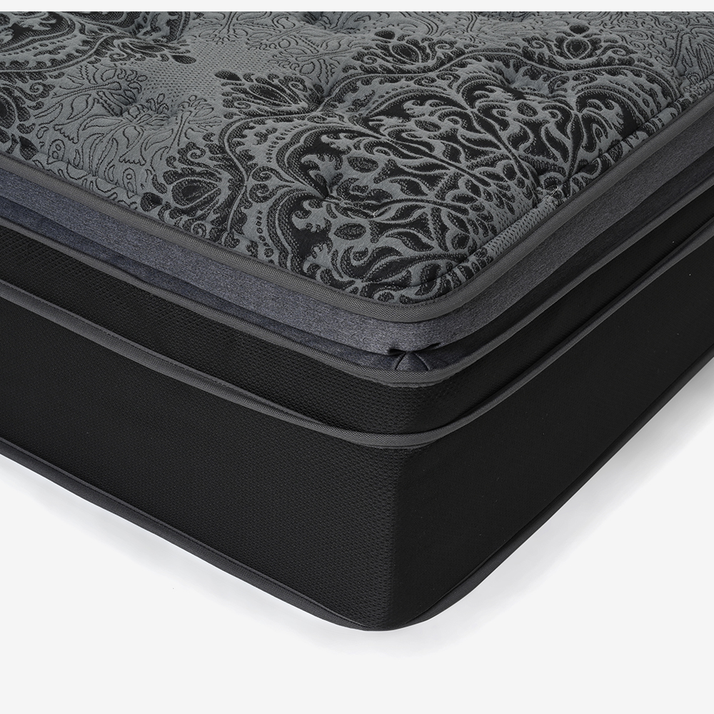 従来モデルよりさらにサポート力がアップしたラピスラズリ2。ラグジュアリーデザインのダークカラーが上質な外観です。シーリー独自のレストサポートコイルと充実した詰め物で身体をやさしく支え、柔らかすぎない深みのある寝心地が魅力のマットレスです。クッション層にも薄型のマイクロポケットコイルを入れることで、細かな荷重の変化にも対応し、フィット感を高めています。最適な力で寝姿勢を支え、上質な睡眠をサポートします。さらに包み込む感触をもたらすユーロピロートップ仕様で至福の眠りを実現します。