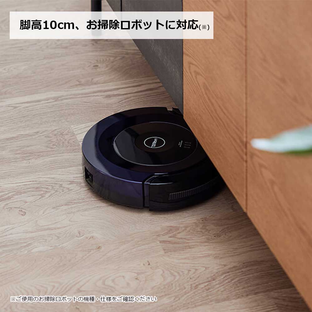 艶を抑えた黒メラミン焼付塗装仕上げのスチール脚が凛とした空間に仕立て上げます。お掃除ロボットに対応できるよう10cmの高さを設けています。※画像はイメージです。