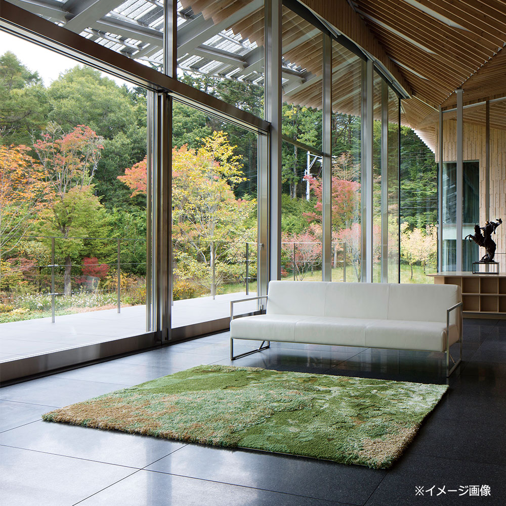 世界的建築家 隈研吾氏コレクション第一作品目。26色もの色数を使い、パイル長を3段階、シルクを織り交ぜることで、微妙な色の集合体である自然の苔むす庭を表現しています。実際に触れるとサラリとしたシルクの心地よい質感を感じます。※画像はイメージです。