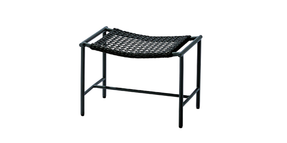 素材には屋外で使っても変色や腐食しにくい人工ラタンを使用しており、高級感のあるシックな色合いは屋内の空間にもマッチします。畳をモチーフにした編み方を取り入れ、洋のアウトドアファニチャーに、和のディテールが引き立っています。