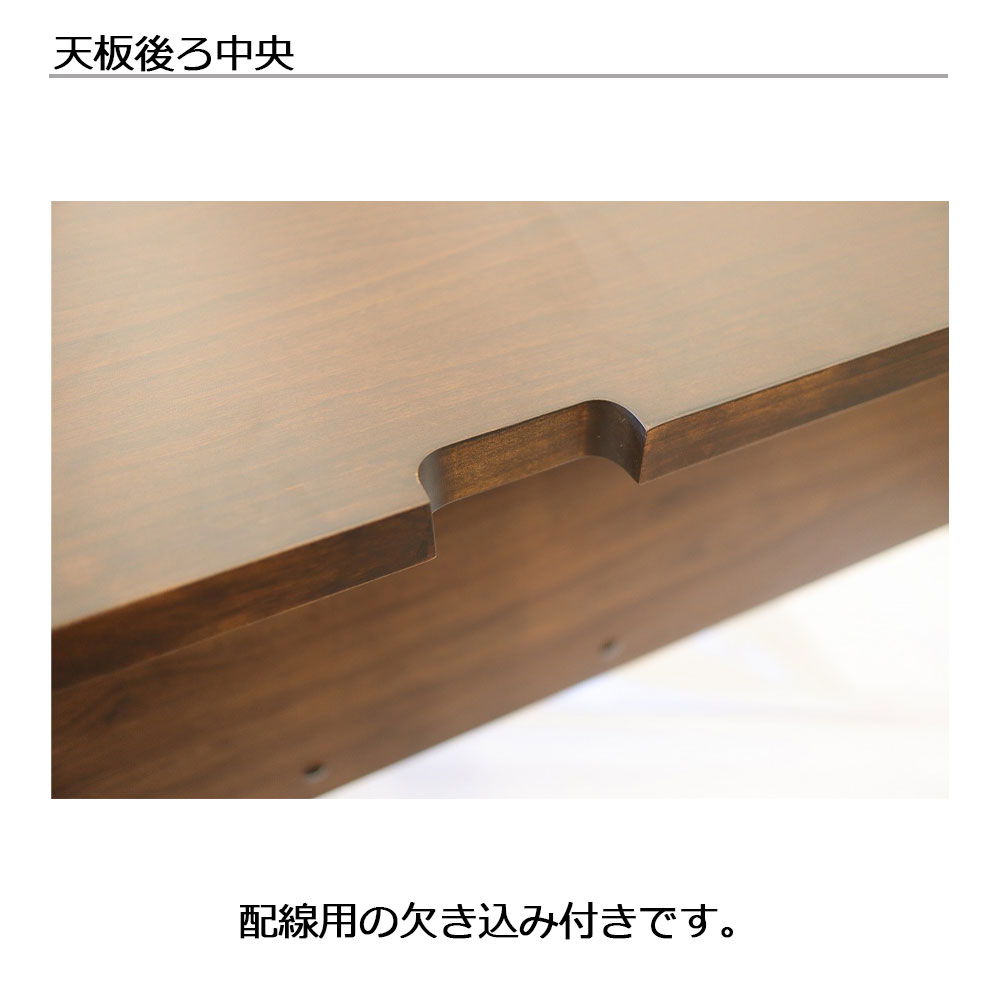 デスク背面にはコード収納スペースがあります。天板後ろ中央には、欠き込みがあるので配線をスッキリまとめられます。