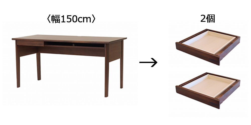 デスク「アーク616 PL」幅150cmは引出しを3個まで取付けできます。デスク本体に引出しは1個付属しますので、引出しは2個追加可能です。取付け可能位置は「左/中央/右」の3箇所です。