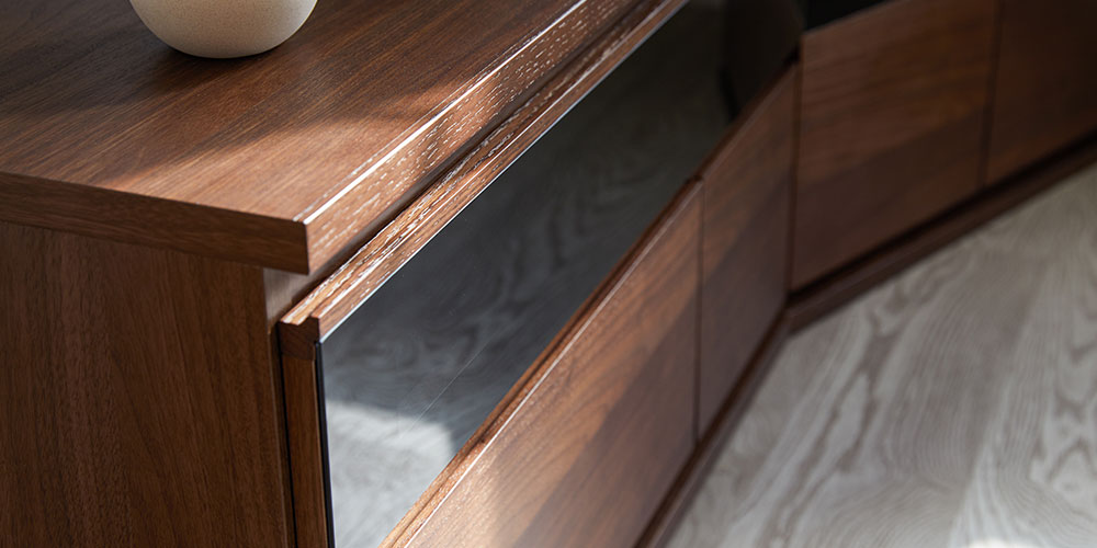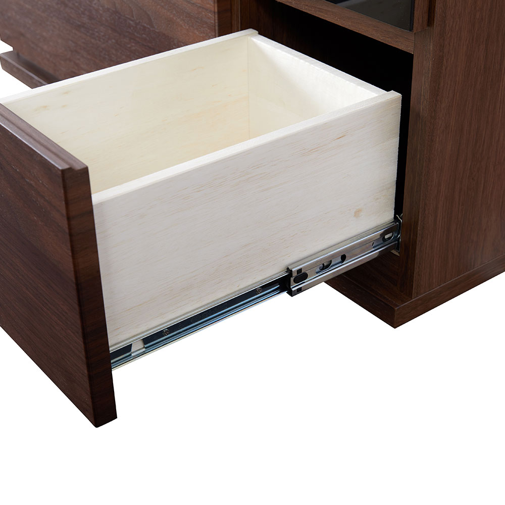 ガラス扉 :3mmダークグレーガラス、MDF、ウォールナット突板