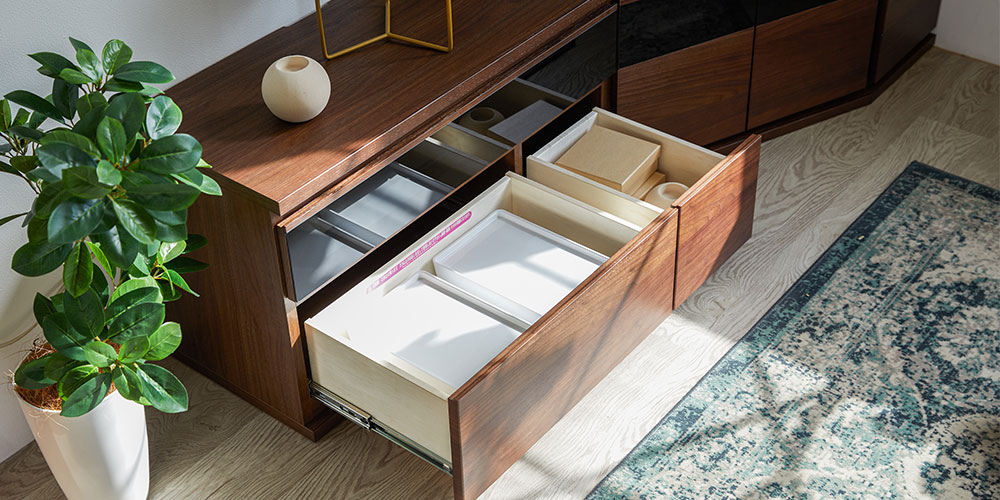 奥までしっかりと見渡せるフルスライド仕様です。物を出し入れする際もスムーズです。※画像はWN色のイメージです。