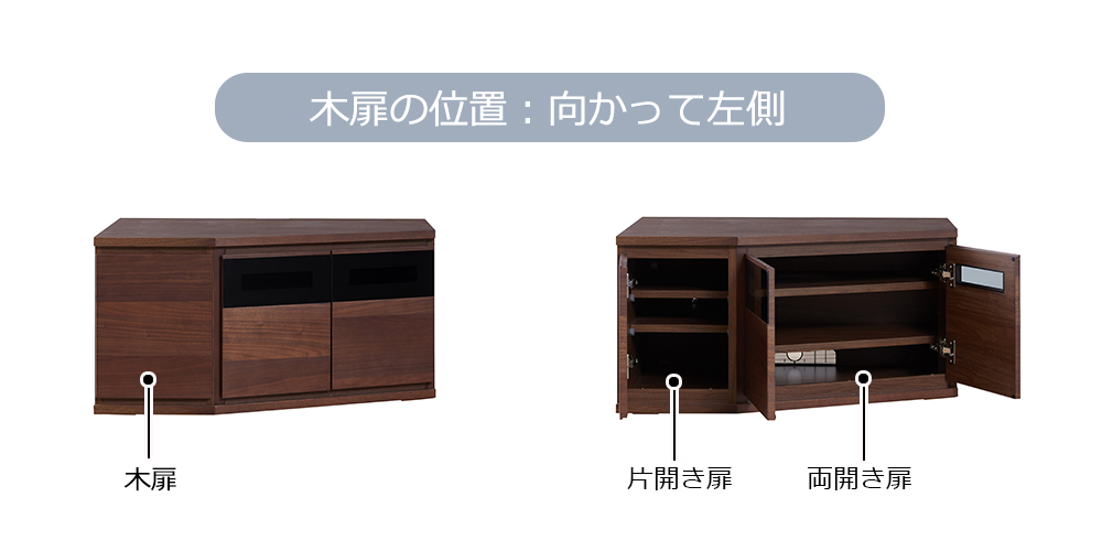 コーナーテレビボード 「ノーク2」幅89cm 木扉の位置 向かって左側 全2色
