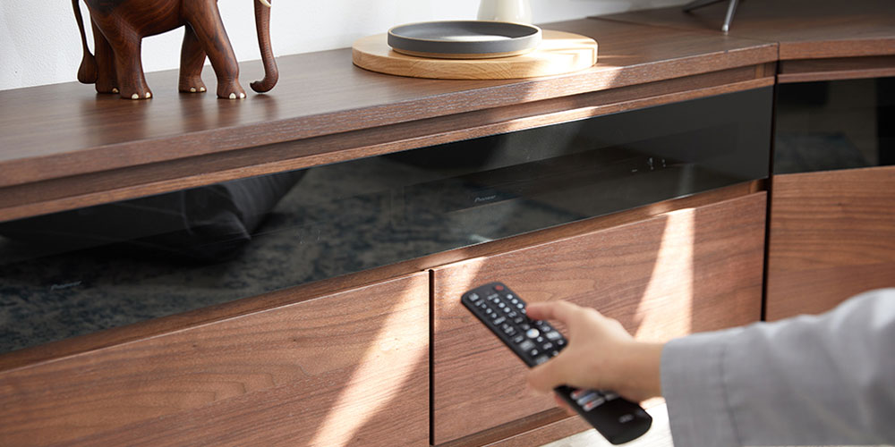 ガラス部分はリモコンのセンサーを通すので、扉を閉めた状態でもAV機器の操作が可能です。※画像はWN色のイメージです。※デッキの種類や位置によってはセンサーを通しにくい場合があります。