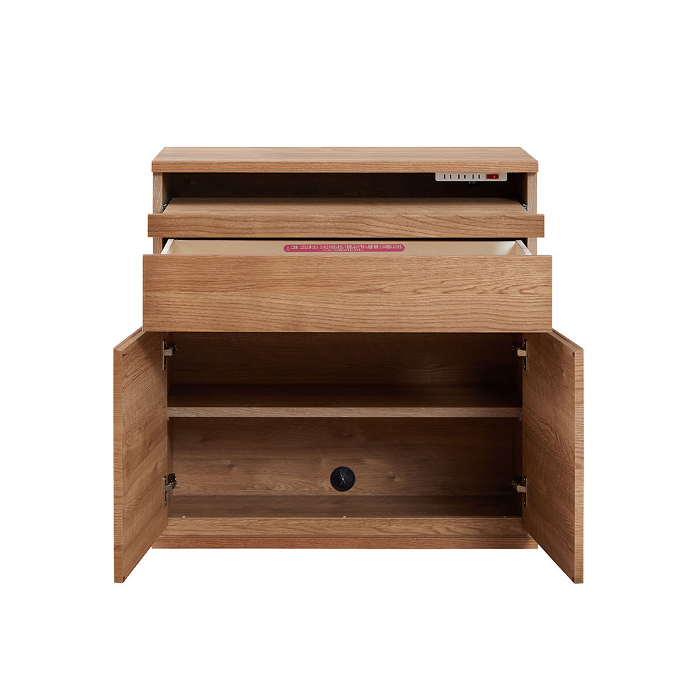 収納部は引出しと可動棚を設けています。収納物にあわせて棚板の位置を調整できるので、大きなものから細かなものまで効率よく収納できます。※画像はOK-VN色のイメージです。